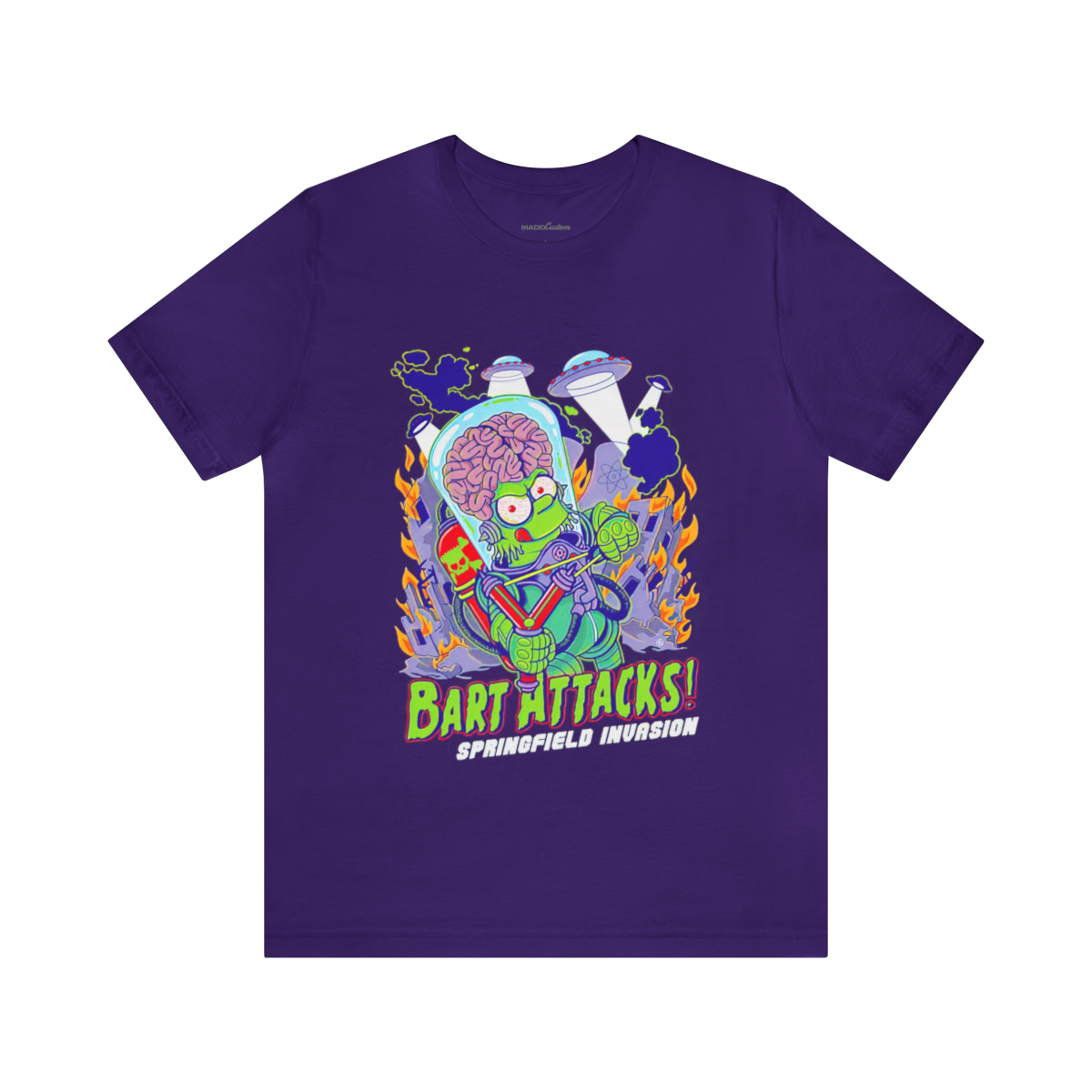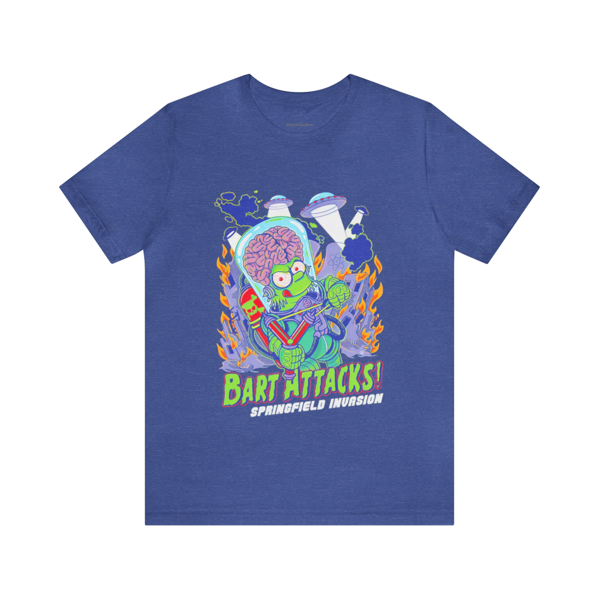 Our t-shirt showcases Bart Simpson in a unique alien form, complete with vibrant colors, antennae, and a playful expression. The design captures Bart’s irreverent spirit and adds an exciting sci-fi element to his iconic character.