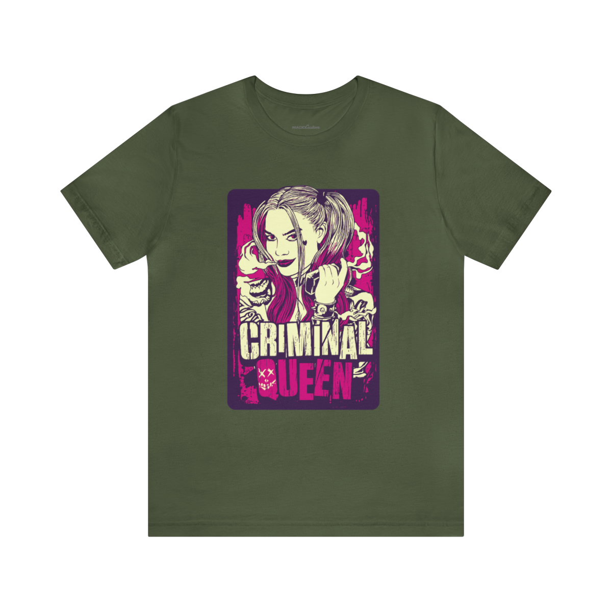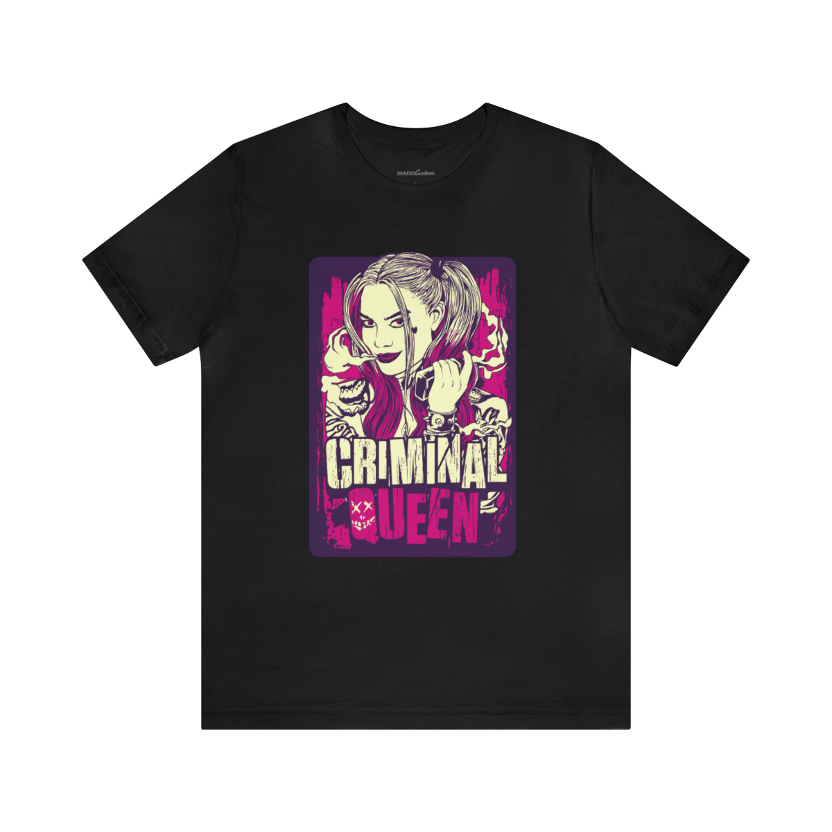 Ideal for casual outings, comic conventions, or as a gift for fellow Harley Quinn fans, our “Criminal Queen Harley” T-Shirt is a versatile choice for any occasion. Let the world know that you stand with the queen of chaos and embrace your inner mischief-maker.