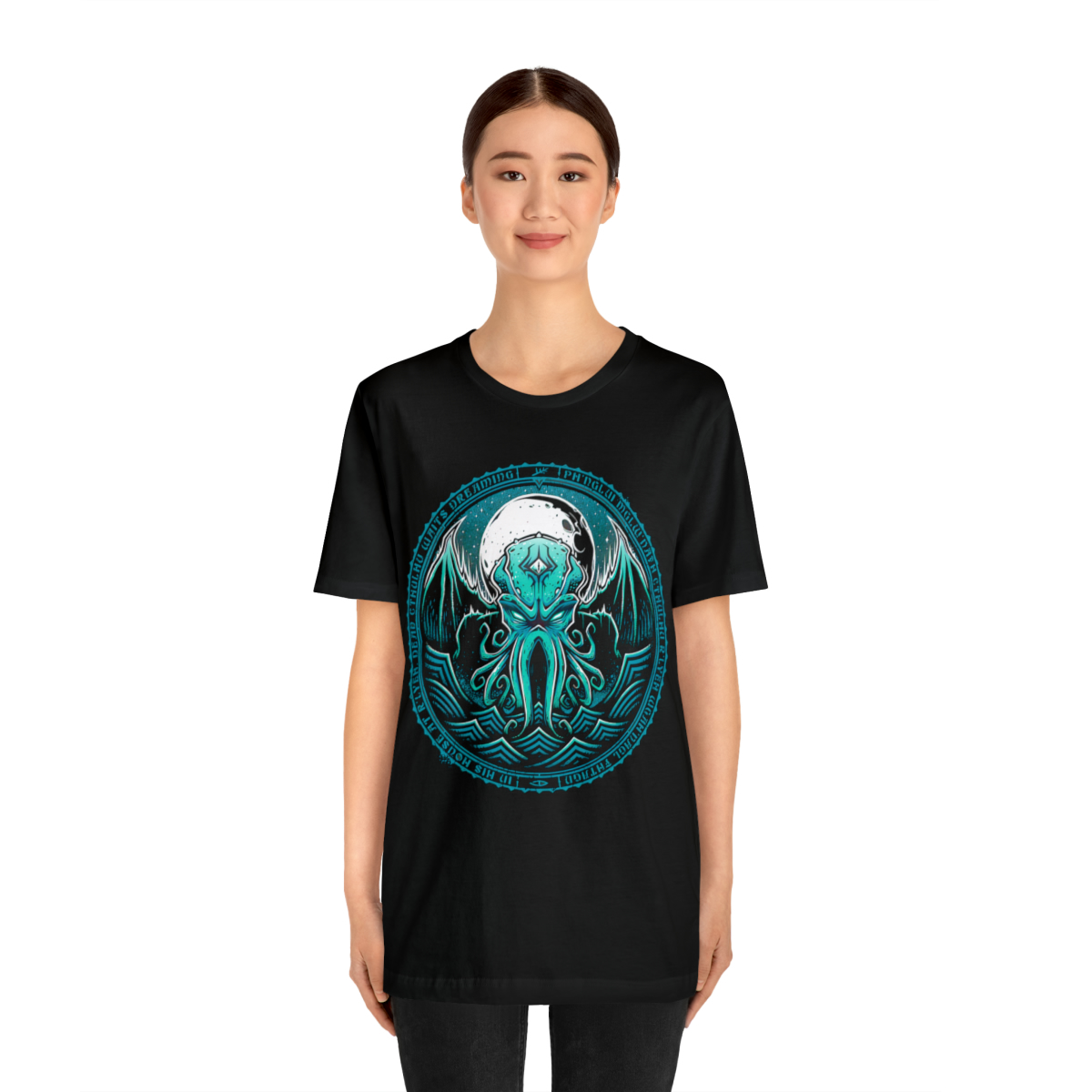 Crafted with meticulous attention to detail, this t-shirt offers both style and comfort. Made from high-quality fabric, it ensures a soft and comfortable fit, allowing you to proudly display your fascination with the enigmatic and mysterious presence of Cthulhu.