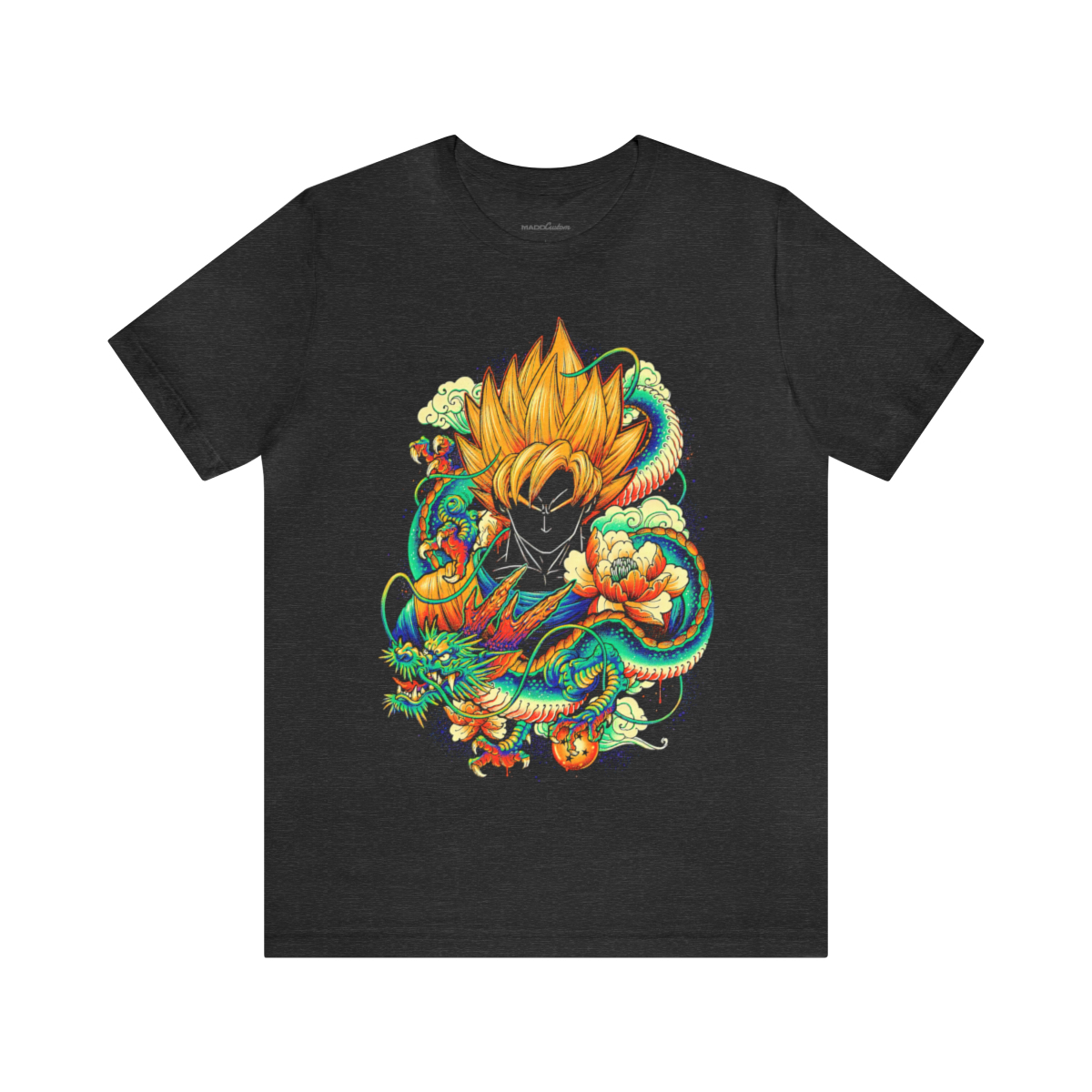 Crafted from high-quality, soft fabric, this t-shirt ensures utmost comfort and durability, making it perfect for everyday wear or cosplay events. The attention to detail in the design is astounding, capturing the essence of both Dragonball Z and the mythical dragon in a unique and captivating way. This shirt is an ideal conversation starter, sure to attract nods of recognition from fellow fans.