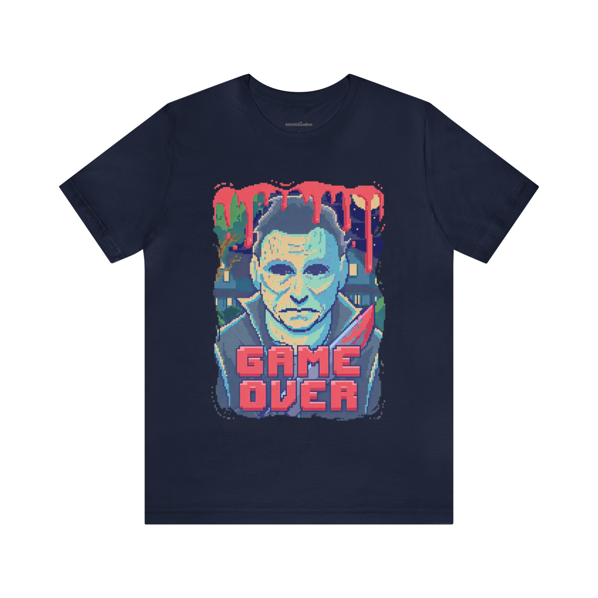 Perfect for casual outings, horror conventions, or as a conversation starter among fellow enthusiasts, our t-shirt is a versatile choice for any occasion. Order yours today and celebrate the iconic character of Michael Myers as you declare “game over” to fear!