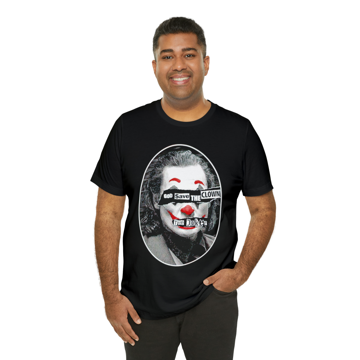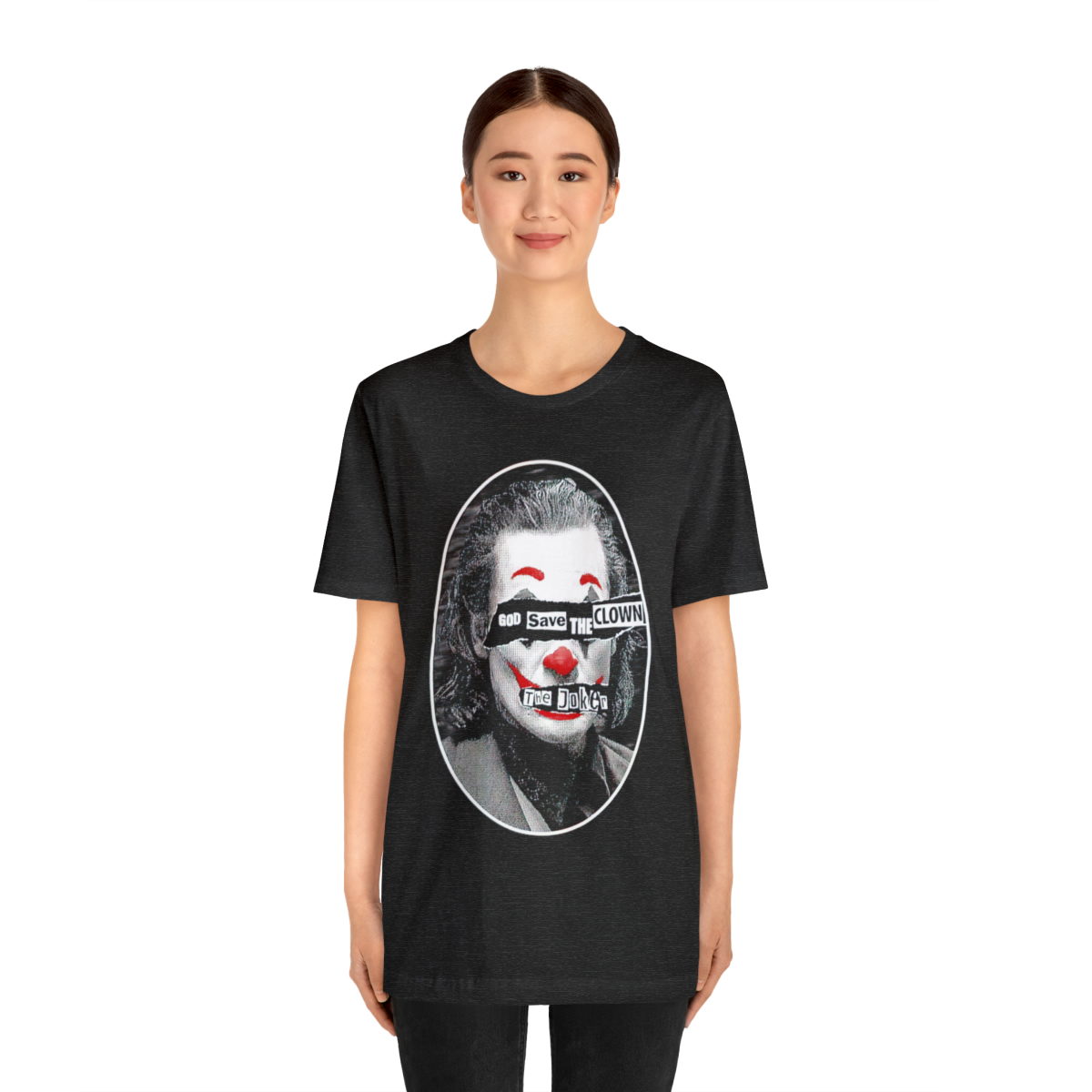 Emblazoned with the phrase “God Save the Clown,” our shirt amplifies the Joker’s status as an agent of chaos, challenging societal norms and questioning the established order. It serves as a rallying cry for those who embrace their own unique and unconventional identities.