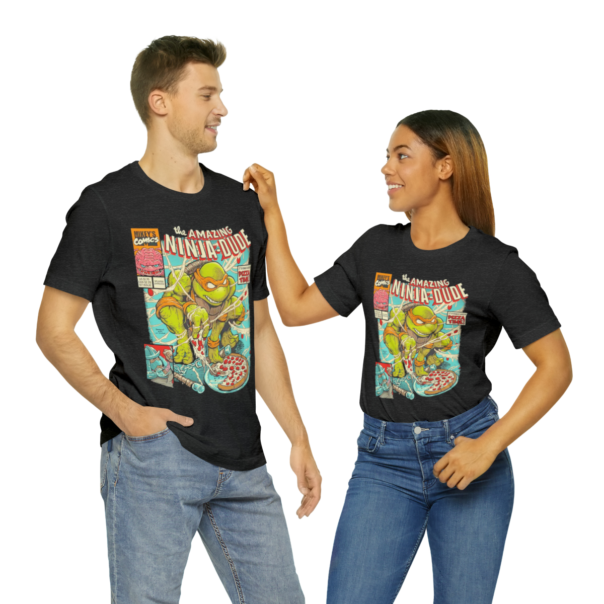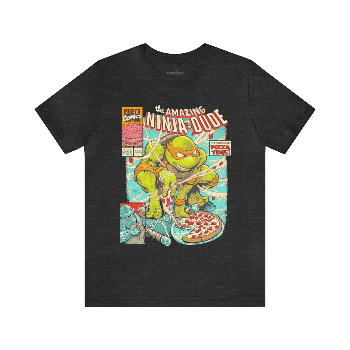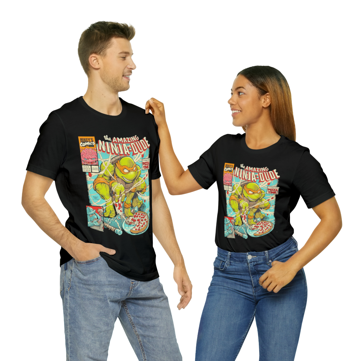 Perfect for casual outings, comic conventions, or as a conversation starter among fellow fans, our t-shirt is a versatile choice for any occasion. Order yours today and celebrate the love for pizza and the infectious energy of Michelangelo as you showcase your Turtle power!