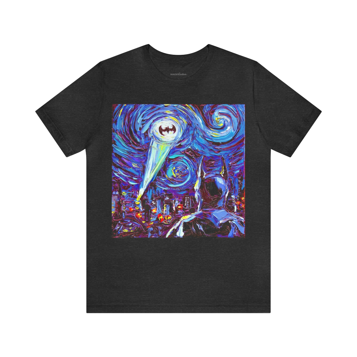 [Keywords: Batman t-shirt, Batman fan art, Batman-inspired design, vigilante t-shirt, Gotham City, starry night t-shirt, batcall t-shirt, Batman fans, Batman apparel, superhero t-shirt, night sky t-shirt]